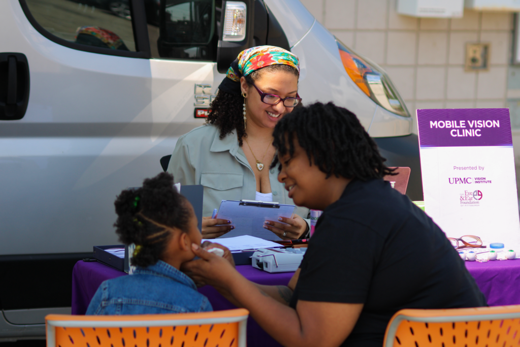 Each month, Eyes on Wheels embarks on three outreach missions to local community clinics, including Birmingham Clinic, Squirrel Hill Health Center, East End Community Health Center, McKeesport 9th St. Clinic, and others in Butler, Waynesburg, and Greensboro. Sites are visited outside of regular business hours, making vision exams more convenient to access for working professionals and parents.